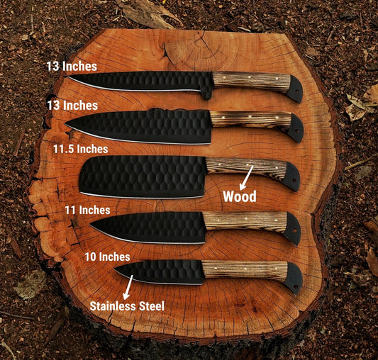 Onyx Wood 5-Piece Black Damascus Knife Set