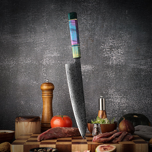 Damascus Chef Knife: With its stunning layered steel pattern, the Damascus chef knife combines aesthetic appeal with exceptional performance, ideal for both home and professional kitchens.