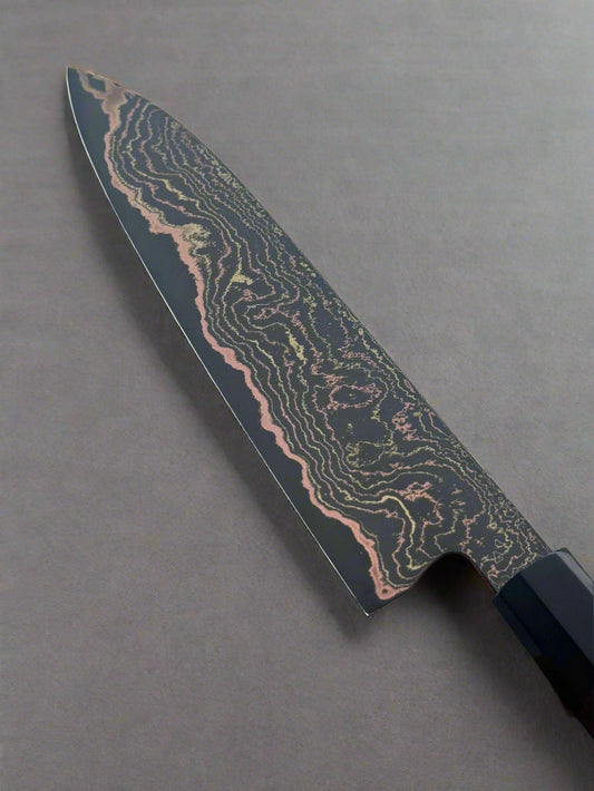 Kazeshin 7" Copper San Mai Premium Damascus Santokus Knife