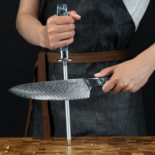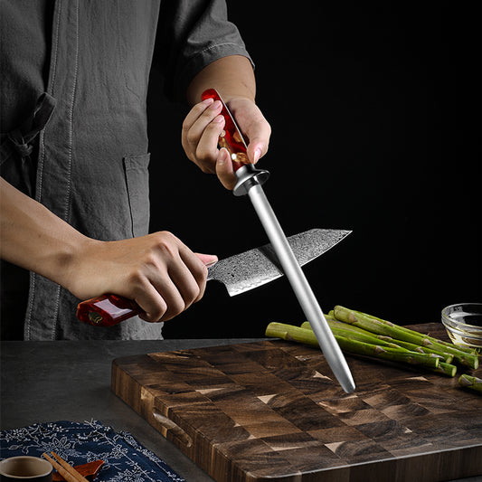 Crafted from premium materials, our Sharpening Rods are built to last and offer a smooth, effective sharpening experience. They are perfect for honing the edges of your Japanese Kitchen Knives, Damascus Knives, Butcher Knives, and more. With regular use, your knives will maintain their cutting power and provide an outstanding performance every time.