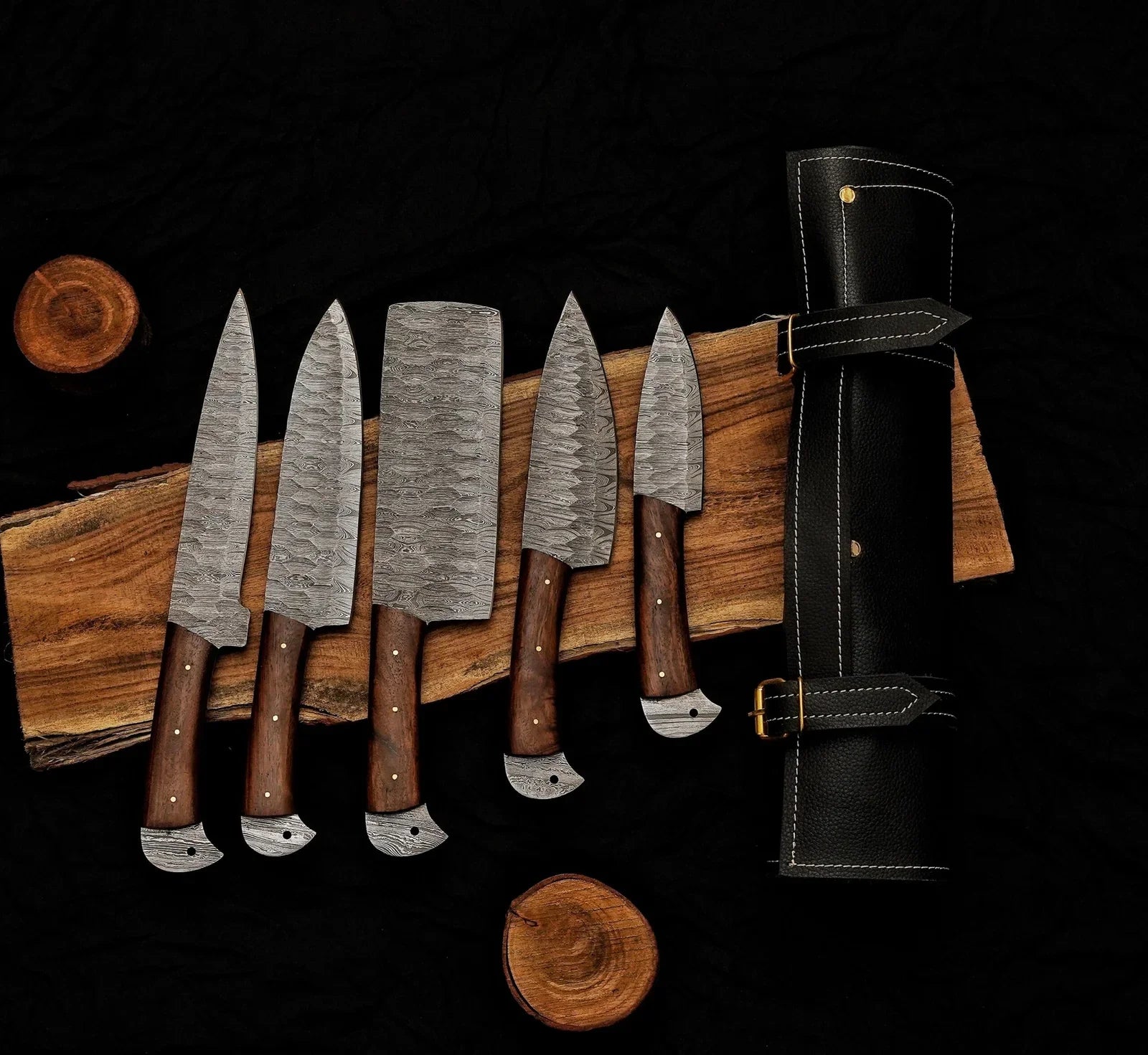 Classic 5-Piece Damascus Steel Knife Set and Leather Roll Bag
