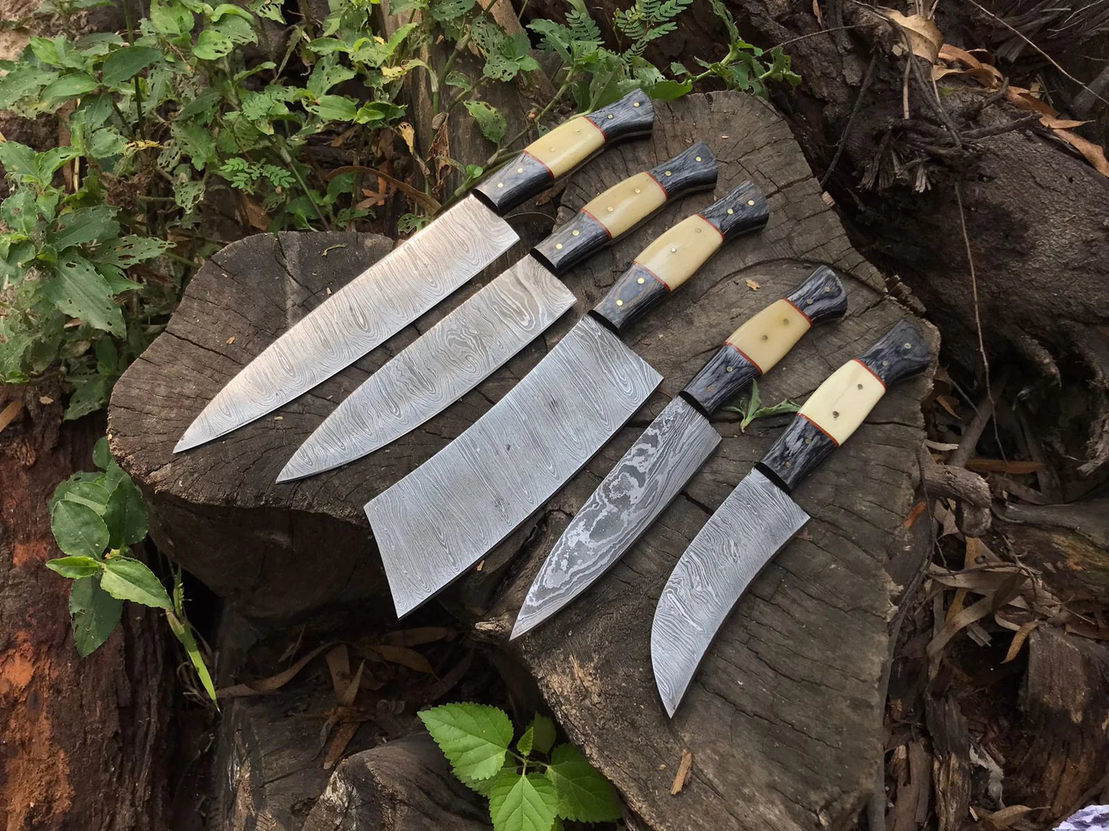 Why Choose the Modern 5-Piece Damascus Steel Knife Set?