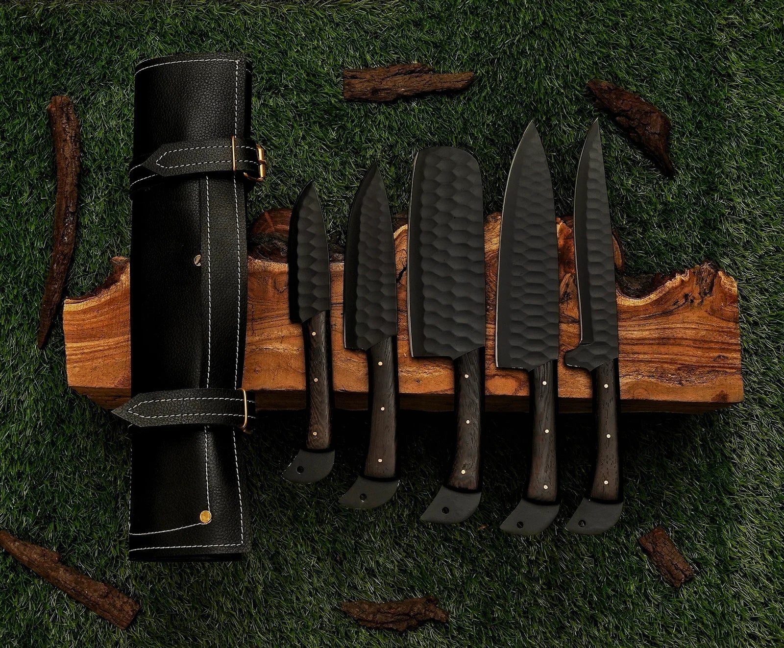 - Custom Leather Roll: Designed for convenient storage and transportation while protecting the knives.
