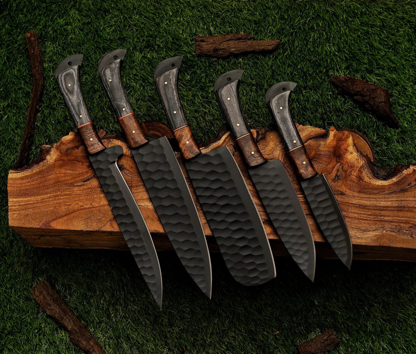 Elevate your culinary skills with the Wenge Wood 5-Piece Black Damascus Knife Set. This handmade set combines the timeless beauty of hand-forged Damascus steel with the durability and sophistication of wenge wood handles. Designed for precision and control, each knife in this set is a testament to expert craftsmanship, offering unparalleled sharpness, durability, and performance for professional chefs and home cooks alike.
